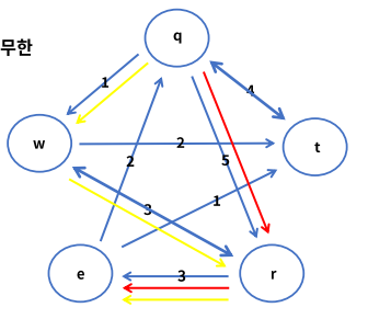 - 비용 : c(q, w) = 1 / c(q, r) = 5 / c(q, t) = 4