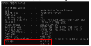 1. PC 네트워크 환경 확인 - Primary DNS 8.8.8.8로 설정